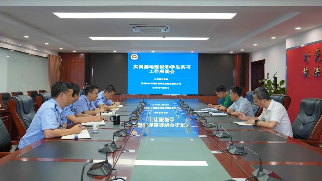 为加强我校实践教学的内涵建设,打造贴近公安实战、专业特色鲜明的实践教学基地,了解和掌握实习基地建设和学生毕业实习状况,7月28日,张爱国副院长带教务处(实习办)相关同志赴昆明市公安局滇池国家旅游度假区分局实习基地进行座谈调研。分局刘华昆局长、杨洪戈政委及政工室、综合处,民族村、太家河派出所负责人参加座谈调研。