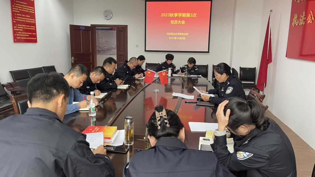 10月8日,马克思主义学院召开党员大会,专题学习习近平总书记给中国人民公安大学在读英烈子女重要回信精神。随后,组织教师开展集体备课活动,6名思政课程教研室主任交流了将重要回信精神融入思政课的着力点和方法,表示要以高度的责任感、使命感投入到教书育人中,讲好英模故事,传承英模精神,教育引导青年学警扛起维护国家安全和社会稳定,守护人民幸福和安宁的神圣职责,刻苦学习训练,练就过硬本领,努力为平安中国、法治中国建设贡献力量。