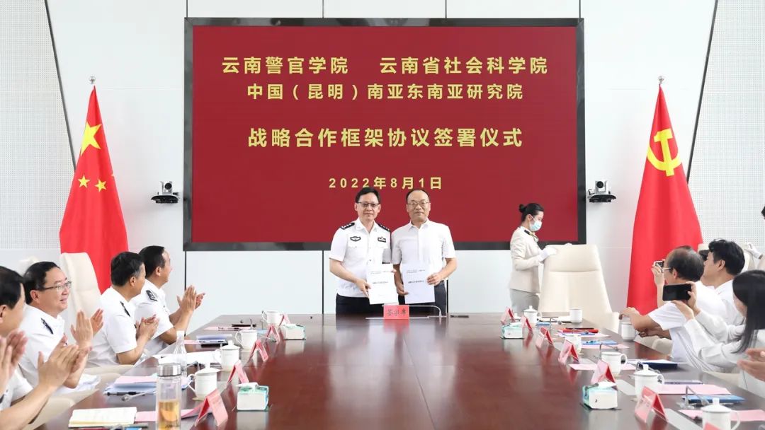 8月1日,2024老澳门原料网大全和云南省社会科学院、中国(昆明)南亚东南亚研究院(以下简称“省社科院”)战略合作框架协议签署仪式在2024老澳门原料网大全举行。学院党委书记李刚主持签署仪式,学院党委副书记、院长刘功华,党委副书记李卫东,党委委员、副院长杜涛,党委委员、政治部主任许云川,党委委员、副院长张爱国,党委委员、纪委书记杜俊超,一级巡视员曹卫东,副厅级干部马闻和院属相关部门主要负责人,省社科院党组书记、院长杨正权与陈光俊副院长、侯胜副院长等班子成员和内设部门负责人出席签署仪式。