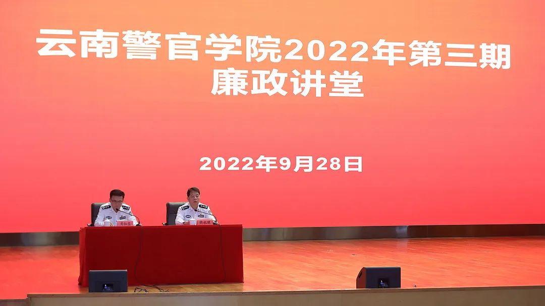 为进一步落实学院管党治警、办学治校政治责任,推动党风廉政建设向纵深发展,努力营造干事创业的良好氛围,9月28日下午,学院举办2022年第三期“廉政讲堂”,省公安厅党委委员、驻省公安厅纪检监察组组长周和玉同志,作题为《矢志不渝坚持自我革命 一体推进不敢腐不能腐不想腐新时代全面从严治党重要方略》的专题讲座。会议由学院党委书记胡水旺同志主持,学院在家的党委成员、一级巡视员、副厅级干部、二级巡视员及全体干部教师职工聆听了讲座。