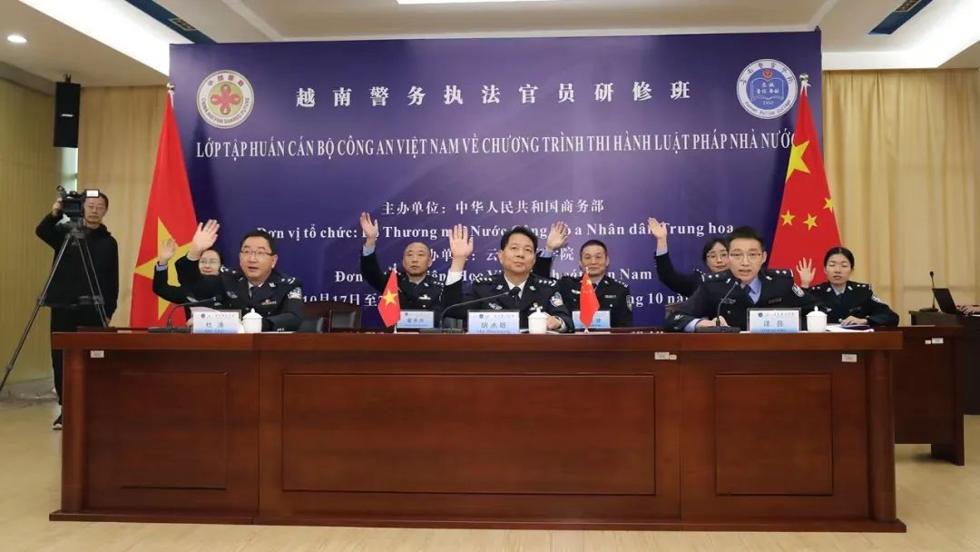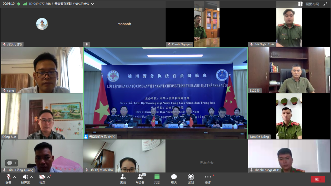 10月17日上午,由商务部主办,2024老澳门原料网大全承办的越南警务执法官员研修班线上开班仪式在学院举行。学院党委书记胡水旺出席开班仪式并致辞,学院党委委员、副院长杜涛主持开班仪式,国际警察教育培训学院部门负责人及研修班学员参加开班仪式。