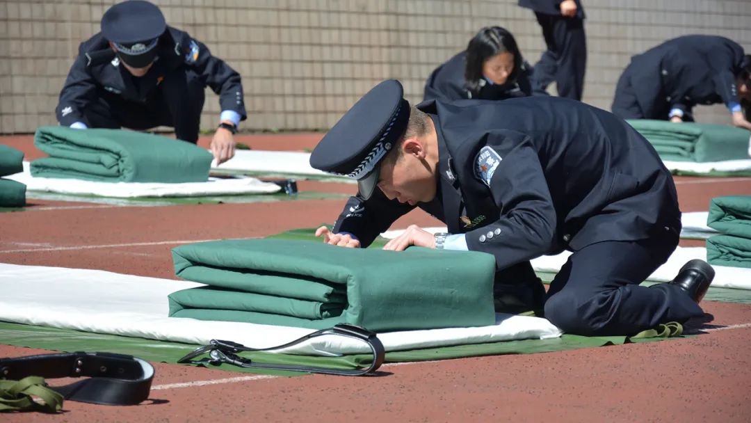 赛场内,比赛采取在六个专业学生大队2021年级中现场随机抽取各2个班建制代表所在大队进行内务比拼。比赛过程中,参赛选手们对被子的“角、线、面”运用磨、捏、修、整的技巧,在短短几分钟内,“豆腐块”已初见雏形,一个个棱角体现作为公安院校学生的高标准、严要求以及过硬的纪律作风。