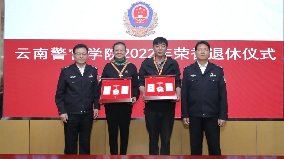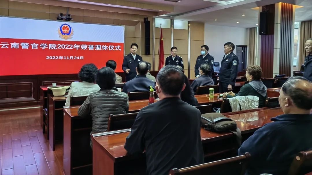 为进一步落实暖警爱警、从优待警举措,增强教职工的职业荣誉感和归属感、自豪感,11月24日学院举办2022年民警荣誉退休仪式,学院党委书记胡水旺,党委副书记、院长刘功华,学院党委委员、政治部主任许云川出席活动,相关部门负责人、退休民警、职工代表30余人参加活动。