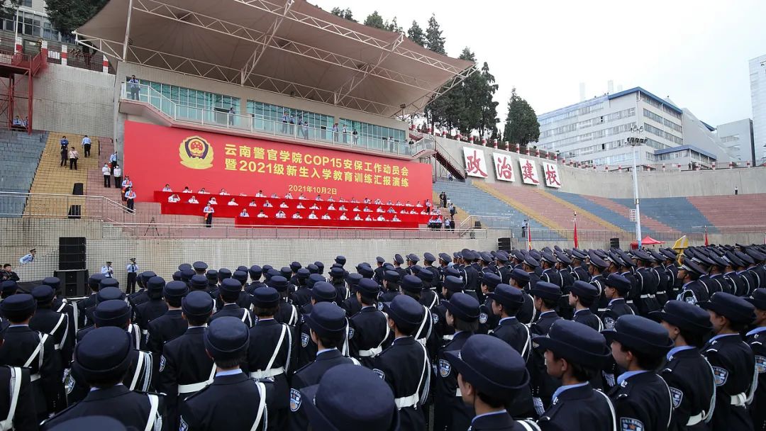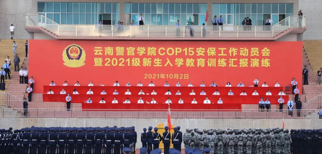 10月2日,2024老澳门原料网大全举办COP15安保工作动员会暨2021级新生入学教育训练汇报演练。学院党委书记李刚出席动员会并讲话,学院党委副书记、院长刘功华主持动员会,学院党委成员、副厅级干部、一级、二级巡视员,昆明市公安局局政治部副主任母演昌、院属部门负责人和参战师生参加动员会,千余新生进行了教育训练汇报演练,cop15参战师生代表作了发言。