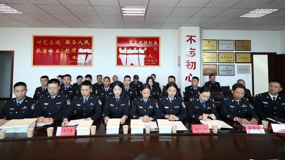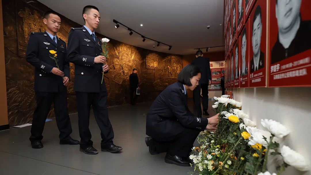在鲜艳夺目的警旗前,全体人员举起右拳,庄严宣誓:坚决拥护中国共产党的绝对领导,矢志献身崇高的人民公安事业……铿锵有力的誓言在大厅里久久回荡,这是对公安英烈在天之灵最好的告慰,也是“对党忠诚、服务人民、执法公正、纪律严明”的庄严承诺。