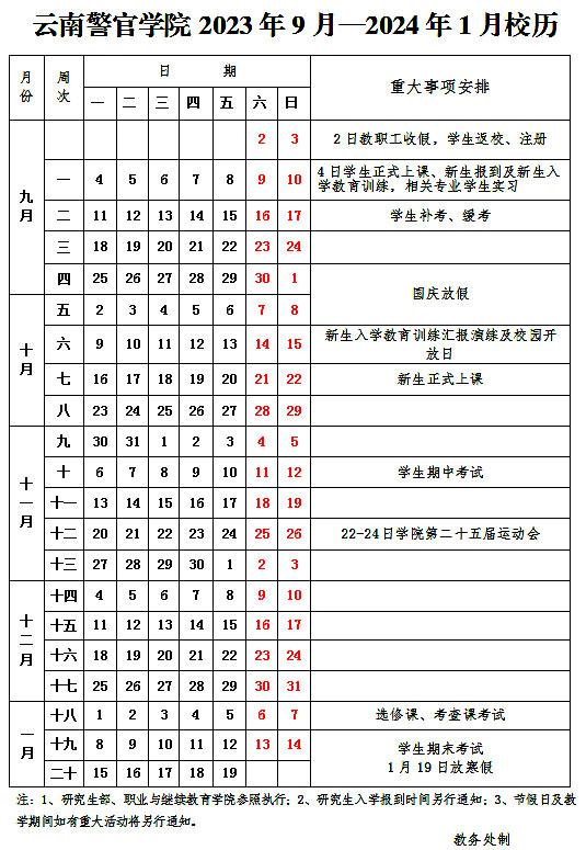 2024老澳门原料网大全2023年9月—2024年1月校历(秋季学期)