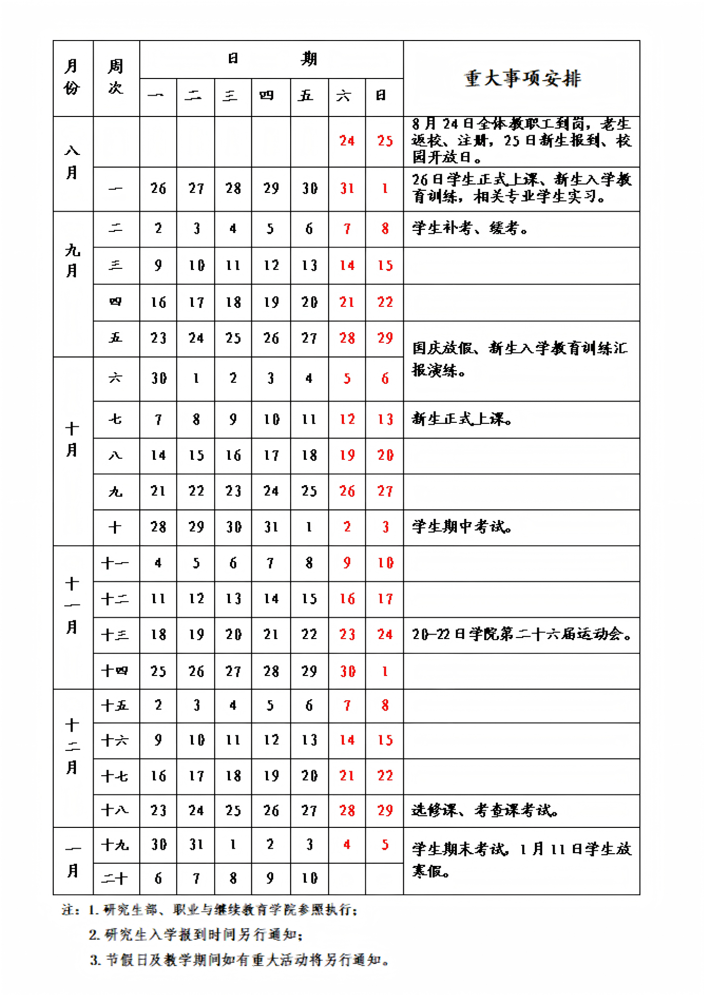 2024老澳门原料网大全2025年8月—2026年1月校历(秋季学期)