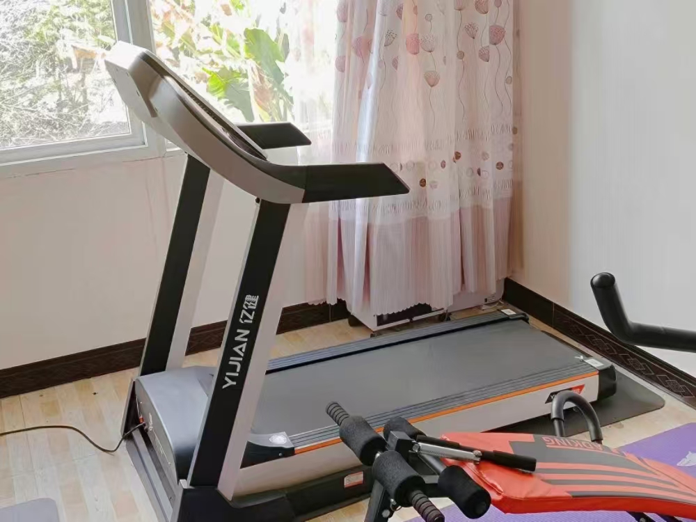 是客厅角落新添置的跑步机