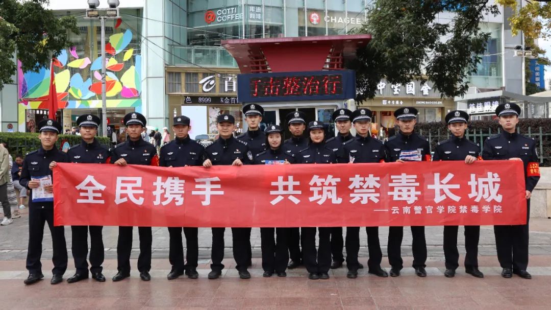 禁毒学专业大队与昆明市公安局五华分局护国派出所、护国路祥云街社区联合开展“普法强基补短板、禁毒宣传进社区”志愿服务主题活动。同学们走上街头,通过向市民展示吸毒后的身体器官病变、不法分子诱骗吸毒典型案例等,让大家深刻认识毒品危害、自觉远离毒品,同时通过活动也让同学们增强了社会责任感,让课堂知识与社会实践有机结合。
