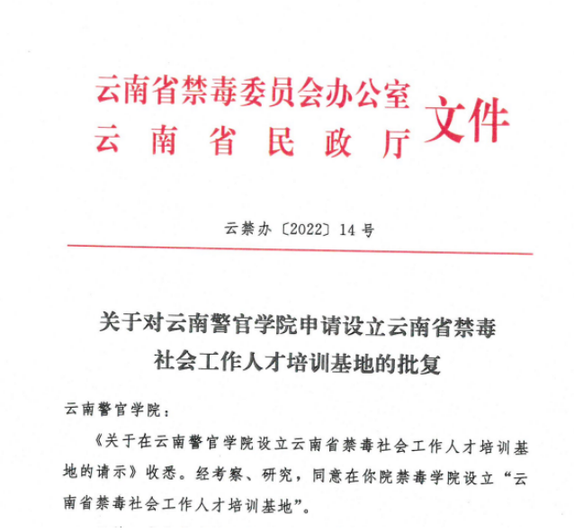 近日,我院申报的“云南省禁毒社会工作人才培训基地”正式获得云南省禁毒委员会办公室、云南省民政厅批复。