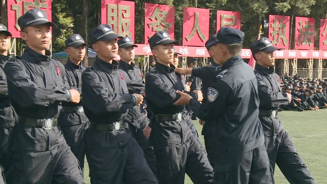 教育训练中的队列训练、体能训练、武装越野不仅仅是对学警身体素质的检验,更是对他们意志品质的磨练。在深秋的训练场,参加教育训练的新生风里来雨里去,面对烈日炙烤、汗水腌渍,他们没有埋怨,面对风雨和泥泞,他们没有退缩。20多天的时间里,在昆明暖阳变酷暑、一雨便成冬的多变气候里,新生经受了高温、寒冷、烈日、风雨、长距离武装越野的洗礼,也获得了满满的收获。通过教育训练,他们的精神面貌发生了巨大变化,皮肤晒黑了,身体素质强化了;嗓子喊哑了,精神面貌转变了;吃大苦流大汗了,个人气质形象提升了;腿脚练疼了,纪律部队意识增强了。