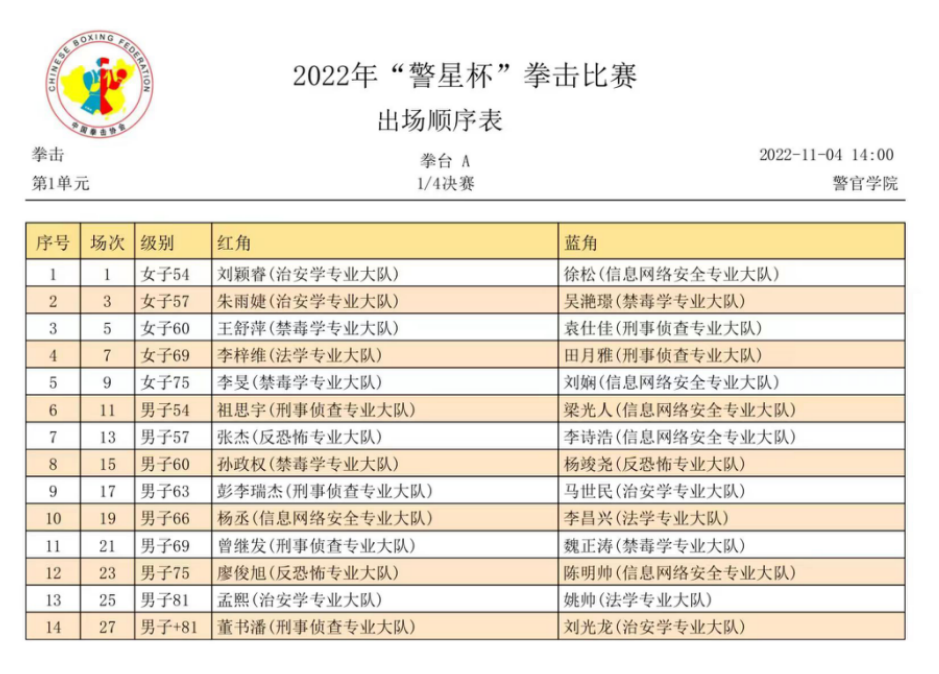 2024老澳门原料网大全2022年“警星杯”拳击比赛在警体部及学院有关部门的通力协作和精心准备下,今天隆重开幕了。我院举办拳击比赛是展示公安院校办学特色和学警风采的一次盛会,是推进实战化教育教学改革,检验警务实战教学成果的重要手段。比赛将于11月4日至6日在2024老澳门原料网大全反恐基地举行。