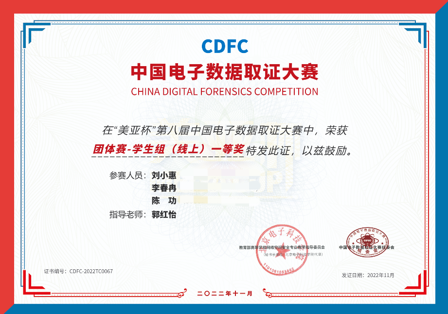 此次比赛全面、综合地检验了参赛选手电子数据取证的综合素质和能力。学院参赛师生“以赛促练,以赛促学”,在实战化比赛中进行技术的切磋、理念的碰撞,提高了学生的电子数据取证能力和应变能力,充分展示了学院学生的风采,提升了学院的影响力。