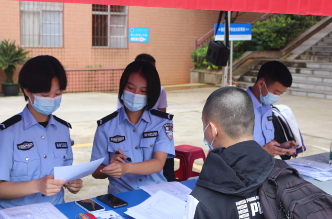 迎新报到处,刑侦大队严格按照学院防疫要求落实防疫举措,确保新生安全入校。大队团总支、学生会精心制作了学警日常学习、训练、生活的宣传画册,现场热情地向新生介绍学校各类设施,引导新生完成入校流程,让新生真切感受到来自警院的关心和温暖。