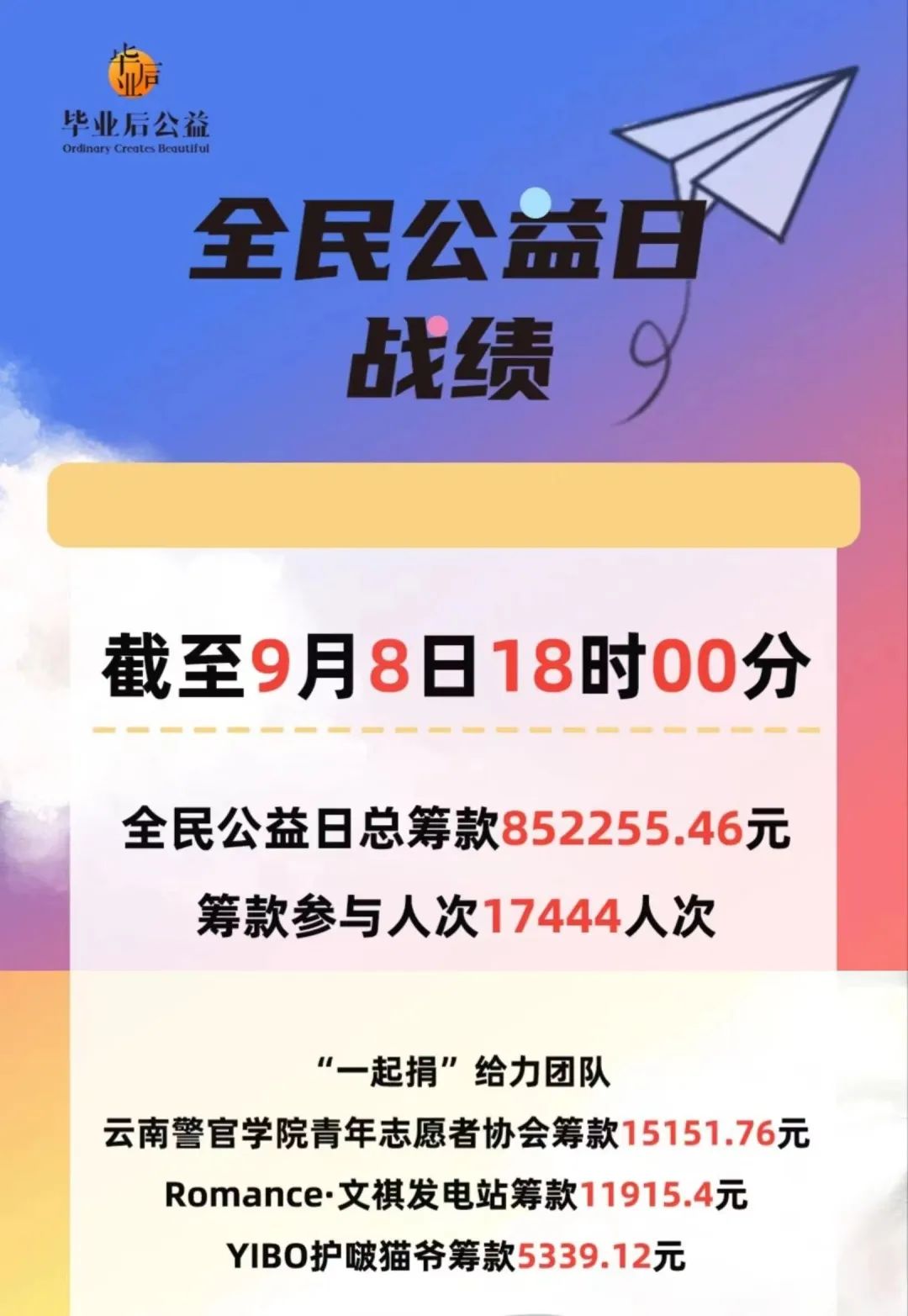 因全院师生的积极参与,让本次募捐活动在1小时内高效筹得款项,公益影响力不断扩大,毕业后公益合作方对此进行鼓励及奖励,计划为学院定点帮扶的小学冠名捐赠一所守护花蕾学校