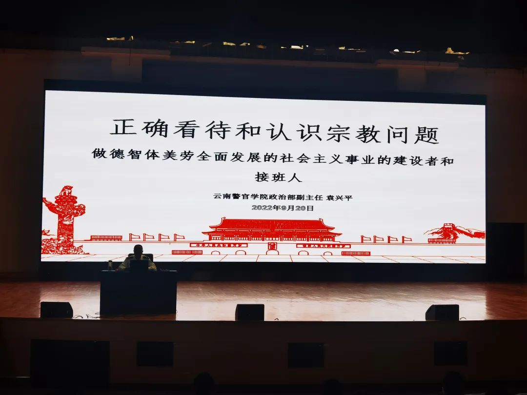 为加强马克思主义宗教观教育,加深新生对我国宗教政策的理解,凝聚正能量,坚决守好意识形态主阵地,9月20日,学院对2022级新生开展宗教知识教育活动。学院政治部副主任、统战部副部长袁兴平以《正确看待和认识宗教问题,做德智体美劳全面发展的社会主义事业的建设者和接班人》为题,对1100余名新生进行民族宗教政策法规宣讲。