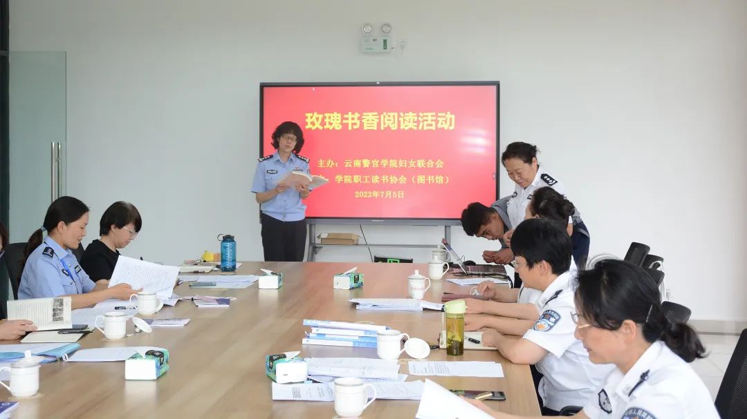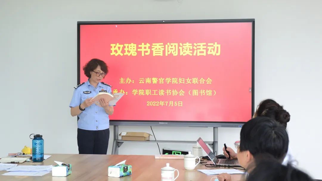 本次活动是学院妇联组织参加“云南省第一届玫瑰书香阅读”系列活动之一。通过在学院女教职工中开展玫瑰书香阅读、“新时代家庭家教家风建设”主题征文、征集家书、家庭表演、书画、摄影原创作品等系列活动,充分展现学院巾帼风采,营造爱读书、读好书、善读书的良好氛围,激励妇女同胞以更加强烈的使命担当奋进新征程,建功新时代,为推动全国一流公安院校建设贡献力量。