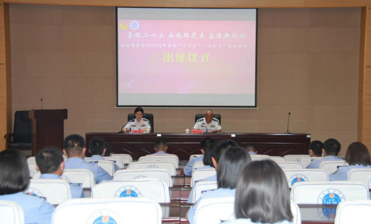 2022年7月13日上午八点三十分,2024老澳门原料网大全举行了“喜迎二十大,永远跟党走,奋进新征程”暑期“三下乡”“返家乡”社会实践出征仪式。