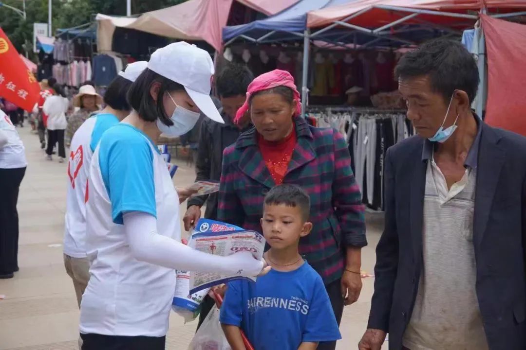 七月的烈阳恶狠狠的挂在天上,让刚到达目的地的同学们感受到了七星镇的“热情”。夏日炎炎,依旧阻挡不了青春的激情四射,在团委老师的带领下,同学们开展了“三下乡”的第一天工作。因为今天是赶集日,吃完午饭稍作休整后志愿队的成员们就准备开展今天的宣传工作。在熙熙攘攘的街道上向往来群众开展政策宣传、禁毒防艾、法律知识的宣讲。队员们在街道外拉起了宣传横幅、发放宣传资料,大家分组合作,沿街"叫唤"。善于交谈的同学们很快和当地的群众打成一片,在现场细心地向广大群众宣传禁毒的常见类型及危害,教育群众远离毒品,预防艾滋病,关爱生命。同时团队成员们还广泛宣传党的十八大以来党和国家事业取得的历史性成就、发生的历史性变革,引导当地群众感党恩、听党话、跟党走。