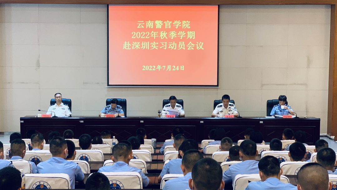 7月24日下午,学院召开2022年秋季学期学生毕业实习动员会,学院党委委员、副院长张爱国出席会议并讲话,教务处、学生处、网安学院、网安专业大队负责同志,全体赴深圳市公安局盐田分局实习学生和带队教师参加会议。会上,教务处对《2022年秋季学期学生毕业实习方案》进行说明,带队教师、实习学生代表作了表态发言。
