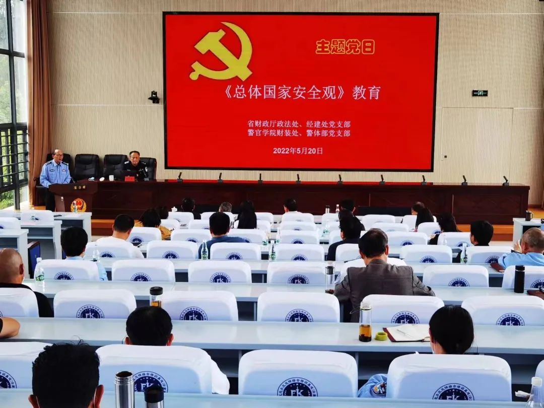 5月20日下午,学院财装处、警体部党支部联合邀请省财政厅政法处、经建处党支部共同开展《总体国家安全观》专题教育主题党日活动。学院党委委员、副院长杜涛同志,学院财装处、警体部和省财政厅政法处、经建处共50余名党员参加活动。