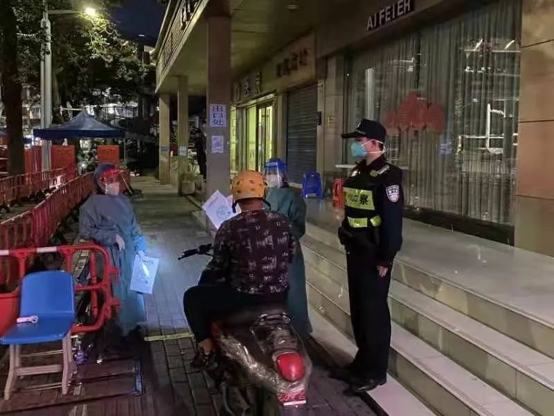 巡逻工作包括车巡和卡点值守。车巡即在所管辖区进行巡逻,关注街道有无情况发生。而卡点值守主要是配合防疫工作人员,维护卡点秩序,帮助协调、解决问题。相比车巡,卡点值守更具挑战性。由于部分群众对政策要求认识不充分、对防控工作理解不到位,时常会与医护人员的发生争执,初出茅庐的实习生难免会因胆怯而不知所措。对此,随行民警、辅警化身热情“兄长”,倾囊相授、耐心解答来自“弟弟”们的疑惑,可谓是“排忧亲兄弟,解难父子兵,抗疫齐上阵,防控一条心”。