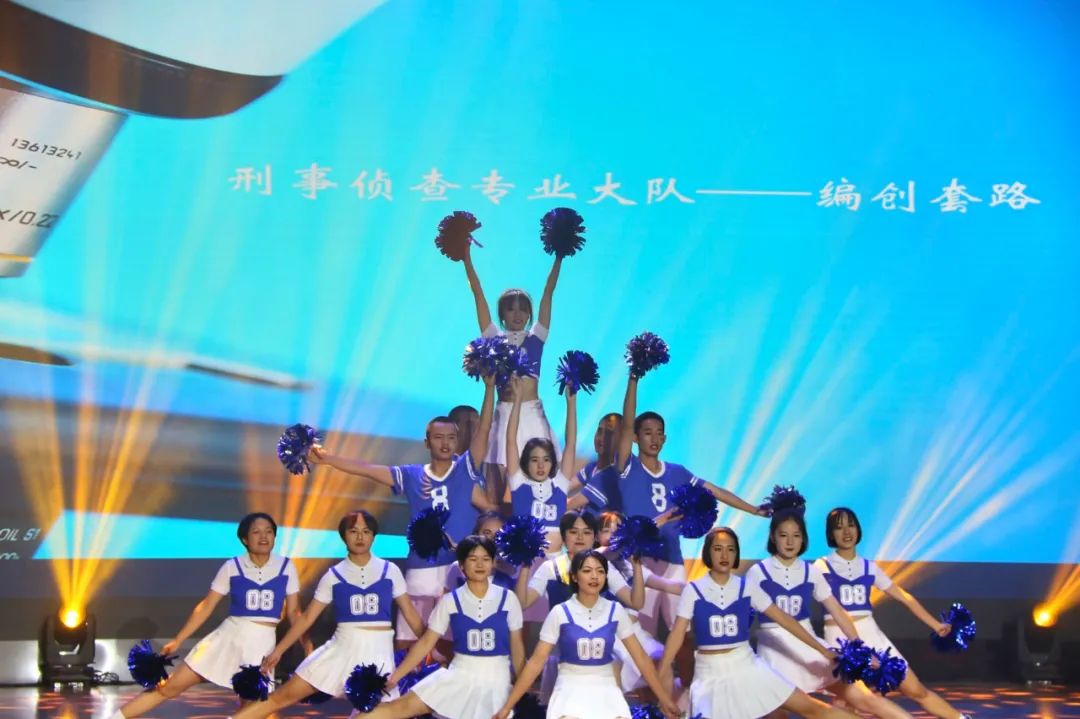 学院党委副书记曹卫东及院属部分部门负责人出席了本次比赛,给予了大赛充分的肯定,为参赛队员鼓足士气,学院警察与体育教育部陈玉敏老师、宁致远老师、财务装备保障处包七予老师、心理健身中心聂鹏老师、团委李洪老师担任此次比赛的评委。在观众们的欢呼声中比赛正式开始,此次比赛分为规定套路操和编创套路操两个部分。在规定套路操比赛中,各参赛方队意气风发,尽显青春风采。璀璨的灯光营造出多彩的舞台效果,整齐有力的动作与音乐完美契合。那动感十足的节拍,划破了寒日的长空;那青春涌动的舞步,燃烧着无悔的青春。同一个背景音乐下,各参赛方队展现出了自己独特的风采,观众无一不沉醉其中,纷纷鼓掌喝彩。在编创套路操中,治安学专业大队参赛队员们元气满满、活力四射的表演引爆全场;反恐怖专业大队参赛队以强节奏的音乐和独特的风格的恰恰舞给观众带来耳目一新的体验;禁毒学专业大队用自由且张扬的舞动旋律牵引观众的热情不断高涨;刑事侦查学专业大队舞姿激扬,为观众带来了一场别出心裁的啦啦操表演;信息网络安全专业大队的表演融合了爵士等多种舞步的变换,令观众直呼过瘾;法学专业大队参赛队则用整齐划一的动作,带来了激情洋溢的舞蹈表演。经过数星期的辛苦付出,各大队啦啦操队员们不负期望,舞出风格,舞出特色,展现了自己最好的水平。