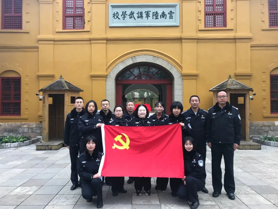 为深入开展党史学习教育活动,进一步激发党员的爱国热情,弘扬优良革命传统铭记光辉革命历史。2021年11月23日上午,禁毒学专业大队党支部组织全体教师党员、部分学生党员代表开展“传承红色基因 弘扬奋斗精神”主题党日活动,一同参观云南陆军讲武堂、云南解放纪念馆及云南起义纪念馆等。