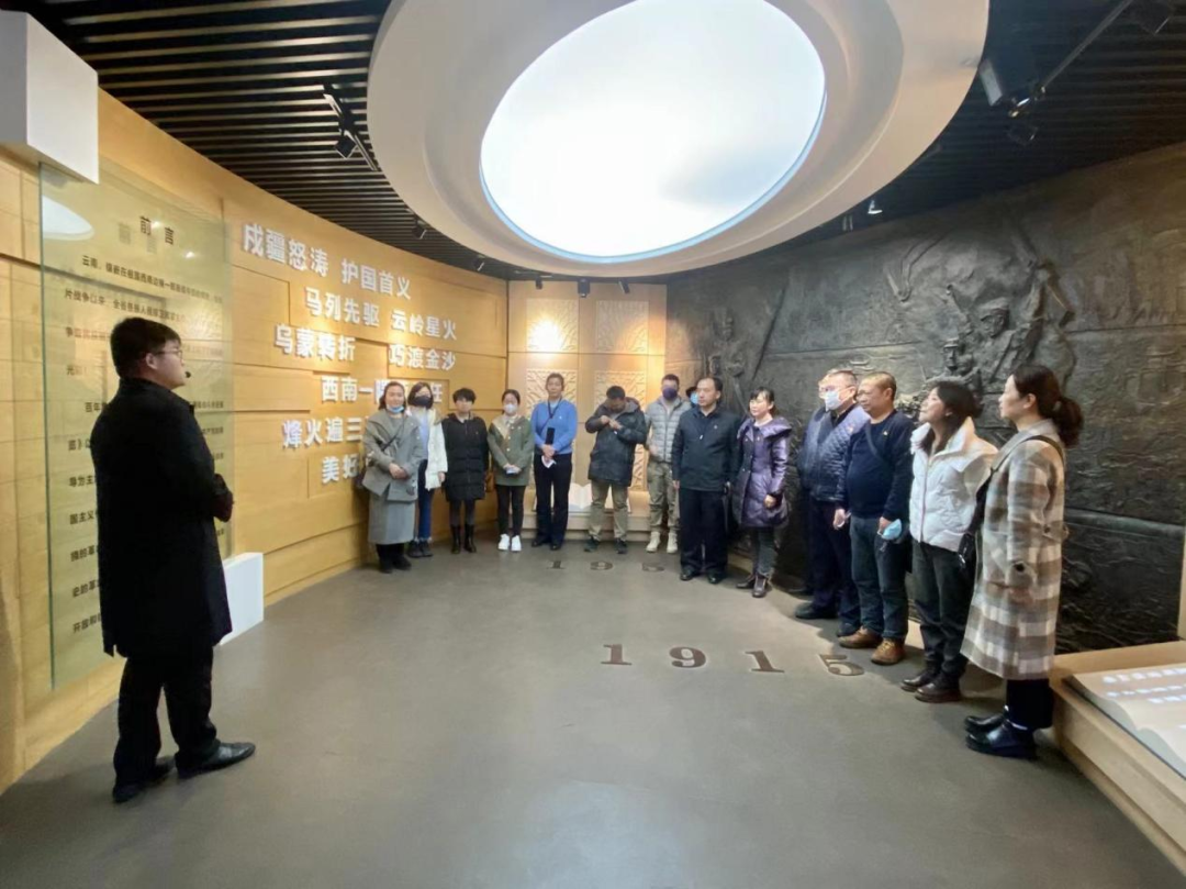 在云南人民革命斗争史展览厅,学史明理、学史增信。讲解员系统地为大家讲解自1840年鸦片战争到1950年云南解放这110年的云南近代革命斗争史。从陆军讲武学堂和蔡锷领导的“重九起义”,护法讨袁;到马列主义传入云南,云岭星火照亮西南大地;接着是抗日战争:扎西会议、巧渡金沙江等重大事件;“一二一”运动”……到革命最终胜利云南全面解放。云南人民为反抗帝国主义侵略,推翻封建专制统治,争取民族独立和解放所进行的艰苦的斗争,深深地警醒着我们今天的幸福生活来之不易,要铭记艰难革命历史,缅怀革命勇士先烈,赓续红色血脉精神。