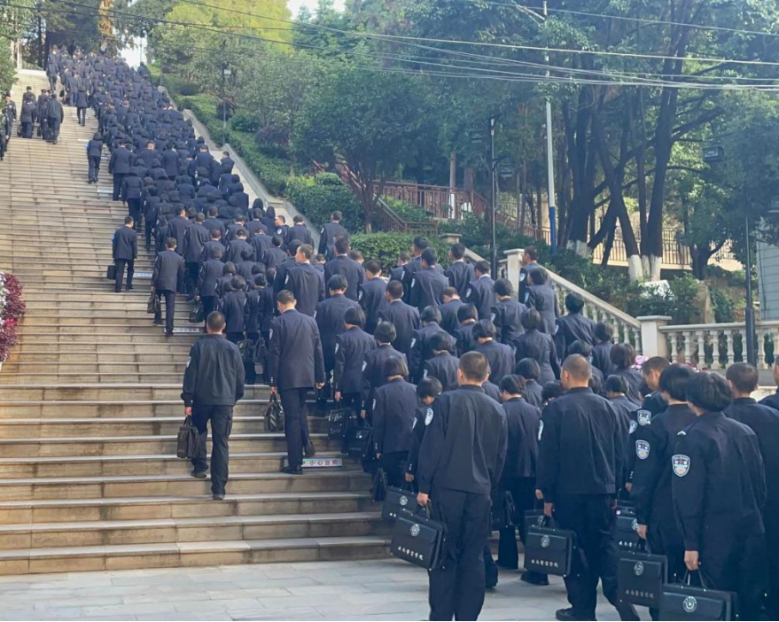 学警们迎着曙光开始了他们每日的必修课——攀登。