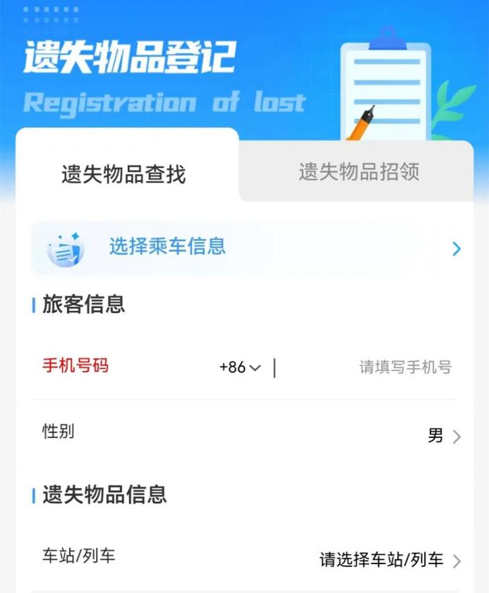 进入12306App的“遗失物品”应用后,在“遗失物品招领”页面,通过输入相关车次/车站和时间,点击立即查询即可。若发现与遗失物品相符信息,可拨打12306客服电话进行申领。若未发现本人遗失物品,可进入“遗失物品查找”,填写遗失物品详情,并通过“进度查询”关注报失及查找进度。