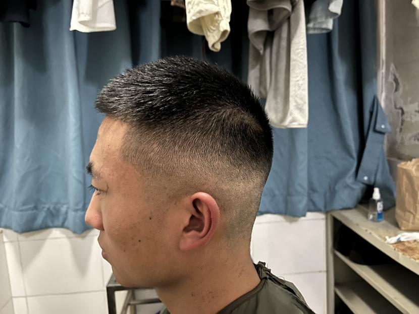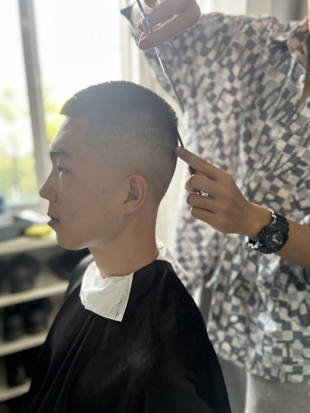 每次理发,我都会放一些自己喜欢的音乐,这能让我和同学们更放松。在聊天中,我会了解他们对发型的想法,或是谈论日常的警校生活。我的技术可以应对多种造型的平头,会根据同学们的喜好来。