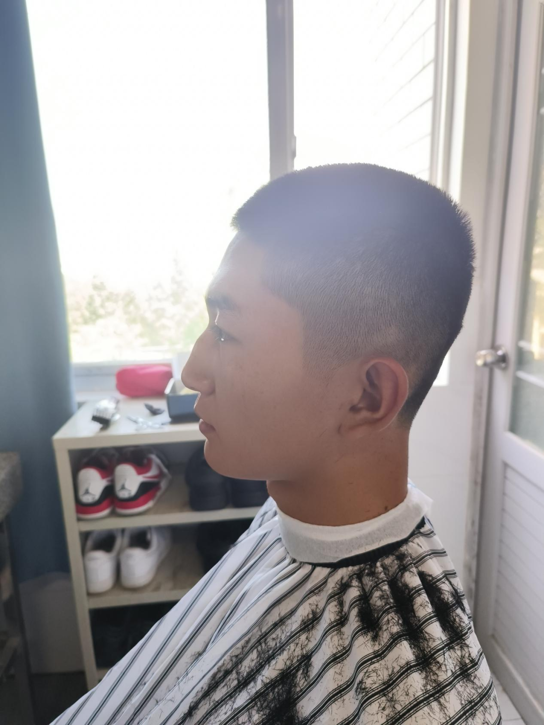 理发是我热爱的,我喜欢帮助同学们打造帅气的造型,这一过程也让我的大学生活丰富多彩,帮我认识了许多朋友。寸头在细节之处也是可以造型多变的,我偏好复古、清爽板正、棱角分明的风格,渐变、前刺等各种平头都是我擅长的造型。我希望能给大家带来不一样的理发体验,让理发成为一种享受。理发不仅是我的爱好,也是我生活中的一部分,我会一直坚持下去。欢迎大家找我理发,我等着你!