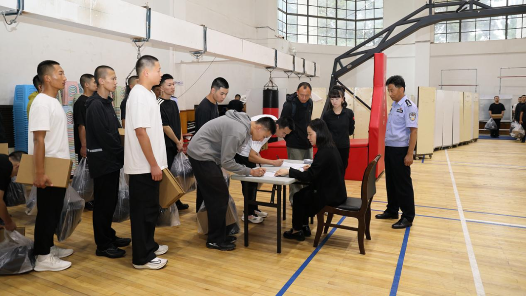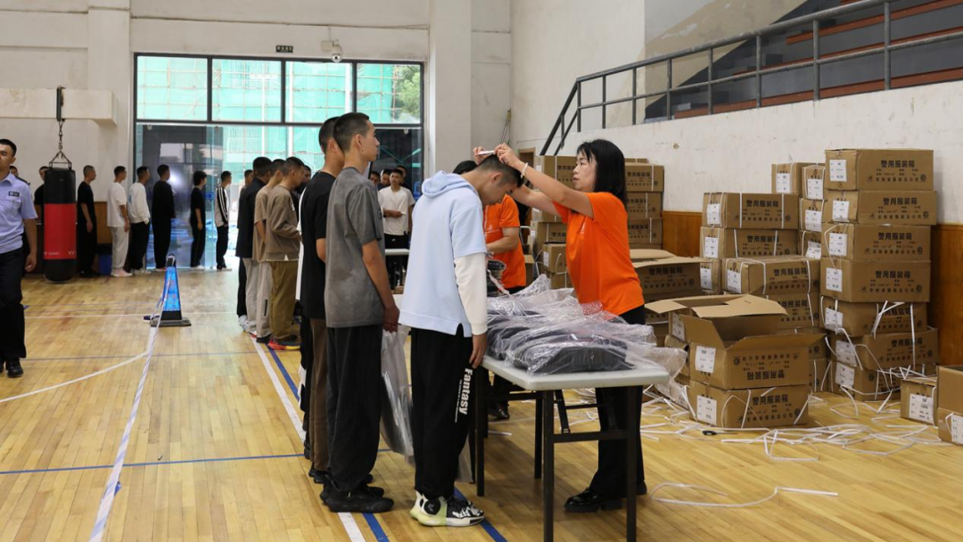 9:00,2025级新生迎来了独具警校特色的“开学第一课”。大家排队测量登记,有序领取作训服,并将服装整齐摆放在宿舍指定位置,等待后续统一着装训练。