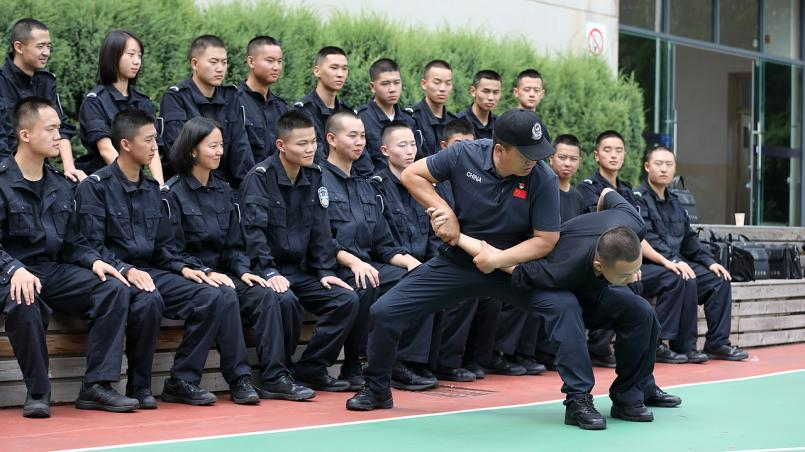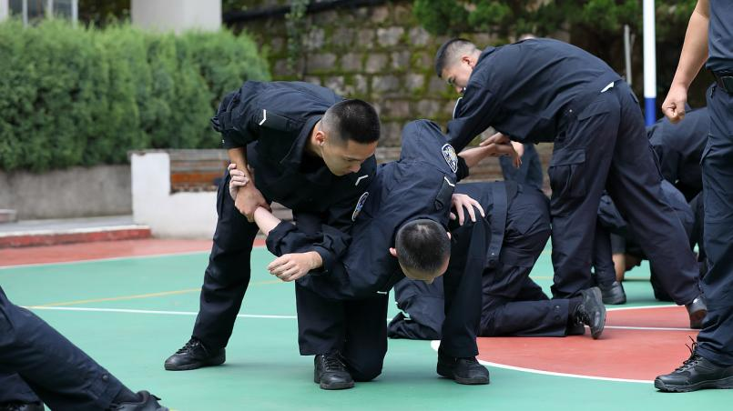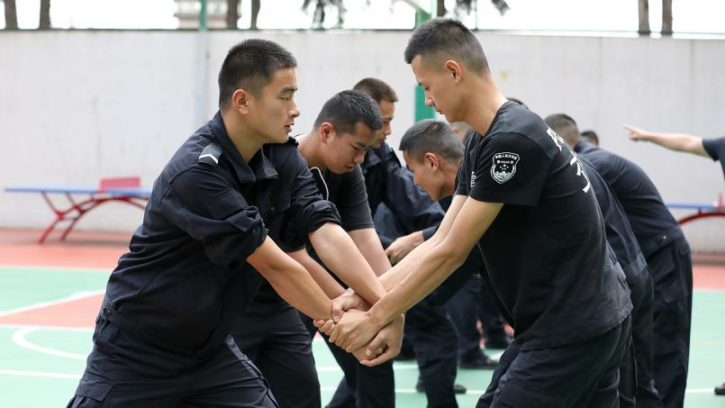 10:00,训练场上,学警们正在上警体课,在老师的认真示范讲解下,同学们一丝不苟,反复练习,一招一式,牢记于心,这可是将来保护人民的基本功。