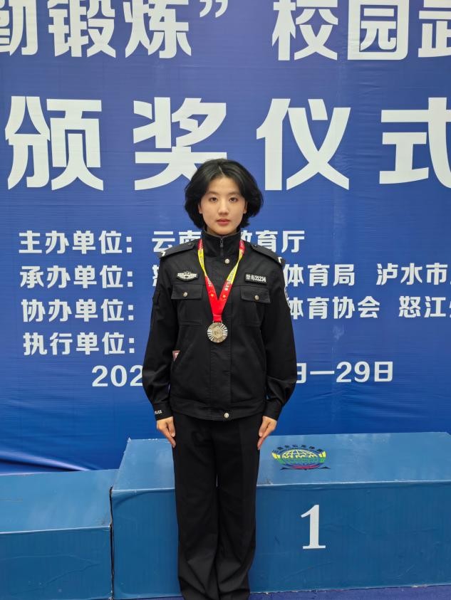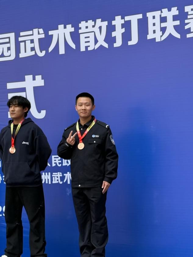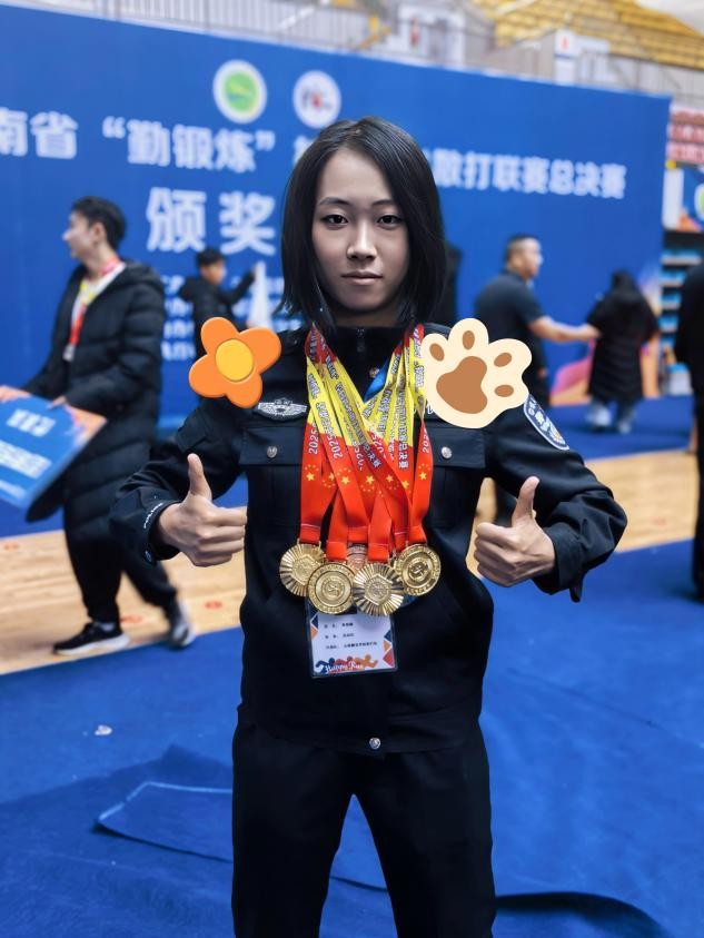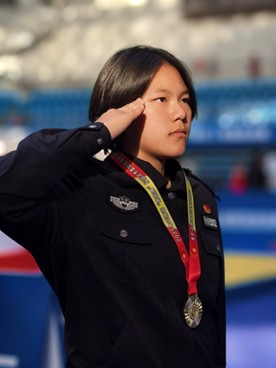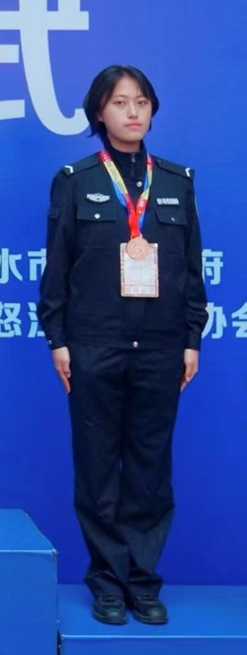 备赛中的刻苦训练、赛场上的沉着对抗,让我深刻体会到“平时多流汗,战时少流血”的内涵。备赛时的反复训练、伤痛与疲惫,在站上领奖台的那一刻都化为了力量。这份荣誉将转化为学习和训练的动力,助力我未来更好地肩负起守护平安的使命。