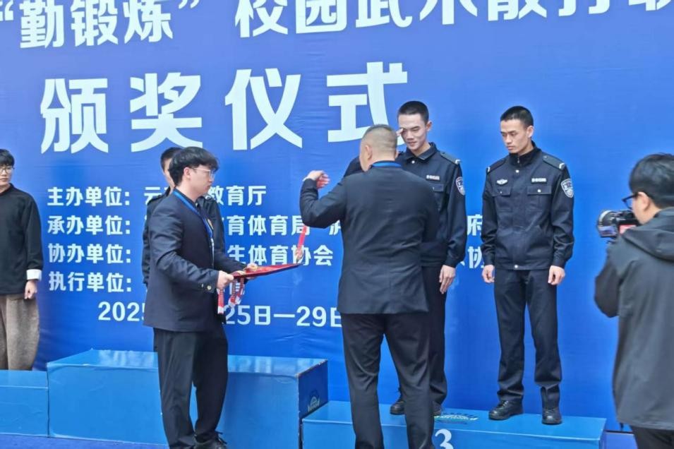 体育道德风尚奖的殊荣,是对队伍精神风貌的最高认可。队员们在赛场之上尊重对手、敬畏规则,胜不骄、败不馁,用文明参赛的实际行动传递武术精神;赛场之下谦逊有礼、互助友爱,这份“武艺精湛、武德高尚”的双重修为,也让云警院散打队成为赛场内外的文明标杆。