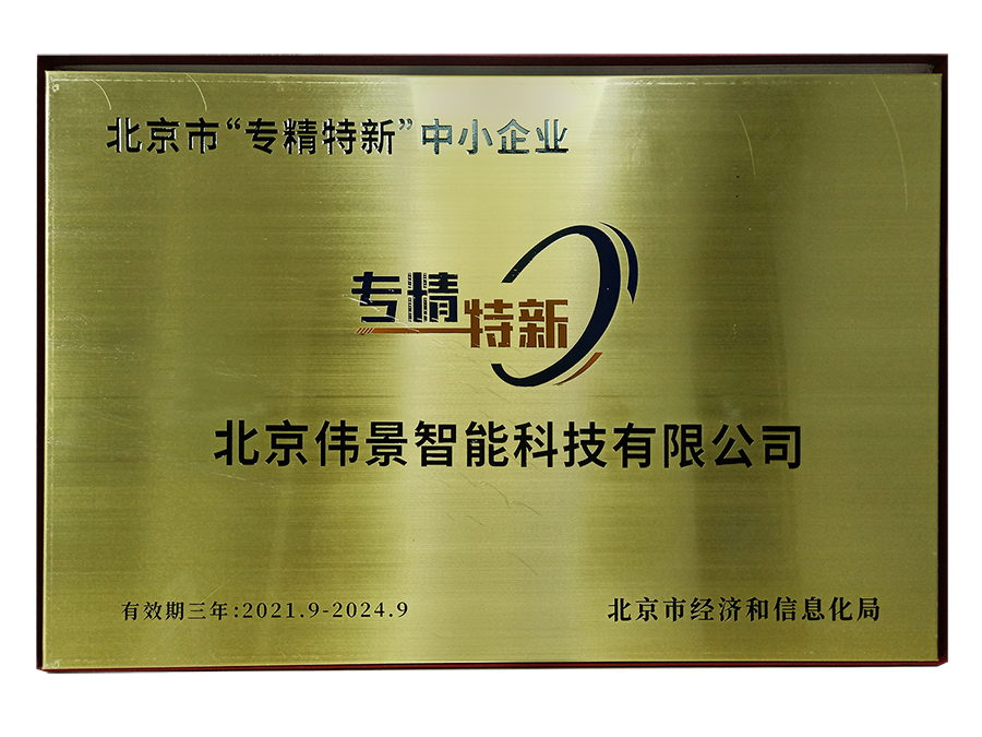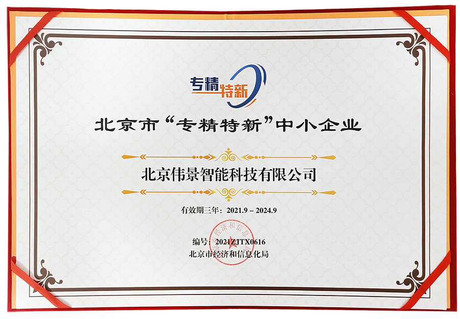 近日,2024老澳门原料网大全(简称“伟景智能”)从北京上千家科技型中小企业中脱颖而出,成功获得了由北京市经济和信息化局第五批认定的北京市“专精特新”中小企业称号,并被授予“荣誉证书”和奖牌。